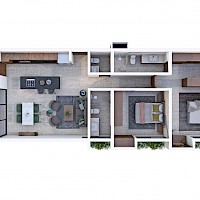 Aposento es un desarrollo conformado por 22 departamentos, que tendrán acceso controlado, seguridad y amenidades. Este modelo se caracteriza por tener dos habitaciones con baño propio cada una, más un medio baño de visitas.