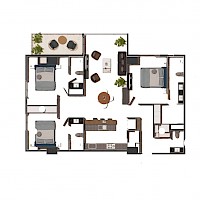 Este modelo se caracteriza por contar con una distribución armoniosa con tres amplias habitaciones, una de ellas con una terraza con hermosas vistas.