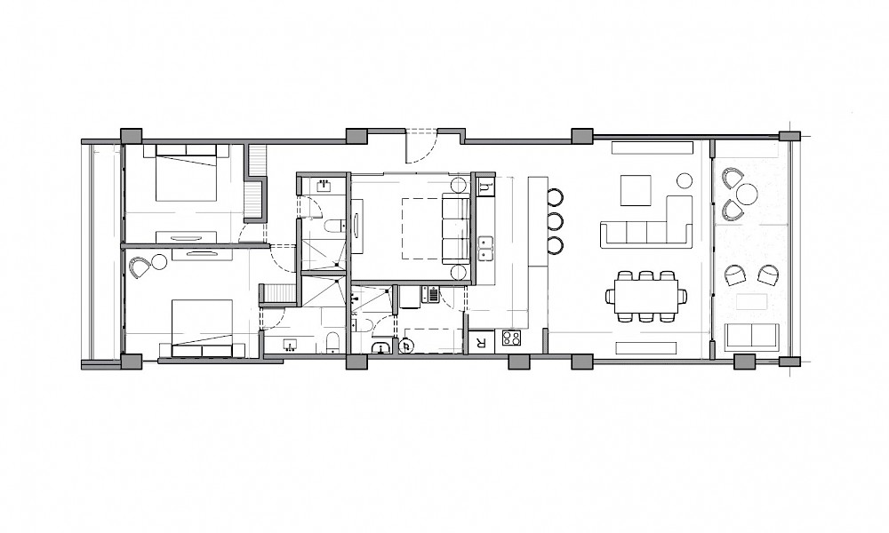 Este modelo se caracteriza por contar con dos amplias habitaciones y una sala de TV, además de tener una terraza con vistas directas al mar.