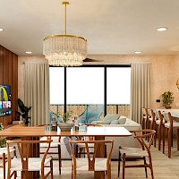 El modelo B se caracteriza por su terraza privada de gran tamaño con dos amplias habitaciones, cada una con baño propio y un baño para el área de visitas.
