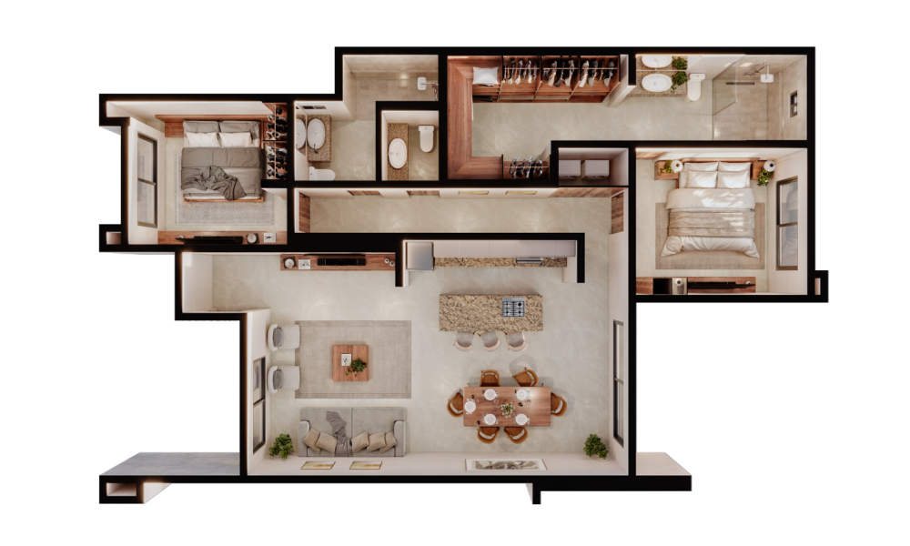 Este departamento se caracteriza por contar con dos habitaciones, la principal con baño propio y área de clóset vestidor.