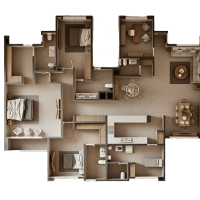 Este departamento se caracteriza por contar con tres espaciosas habitaciones, un estudio y un cuarto de servicio con baño.
