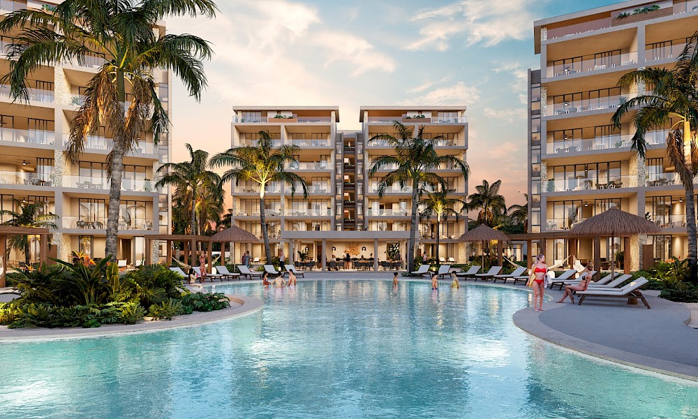 Departamentos en Dunas Chuburná, situado a 42km de la ciudad de Mérida, un proyecto en primera fila de playa que cuenta con 85 metros lineales de frente hacia el mar, conformado por 74 departamentos que estan distribuídos en 6 torres diferentes, además de tener amenidades, acceso controlado y un entorno con mucha tranquilidad.