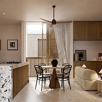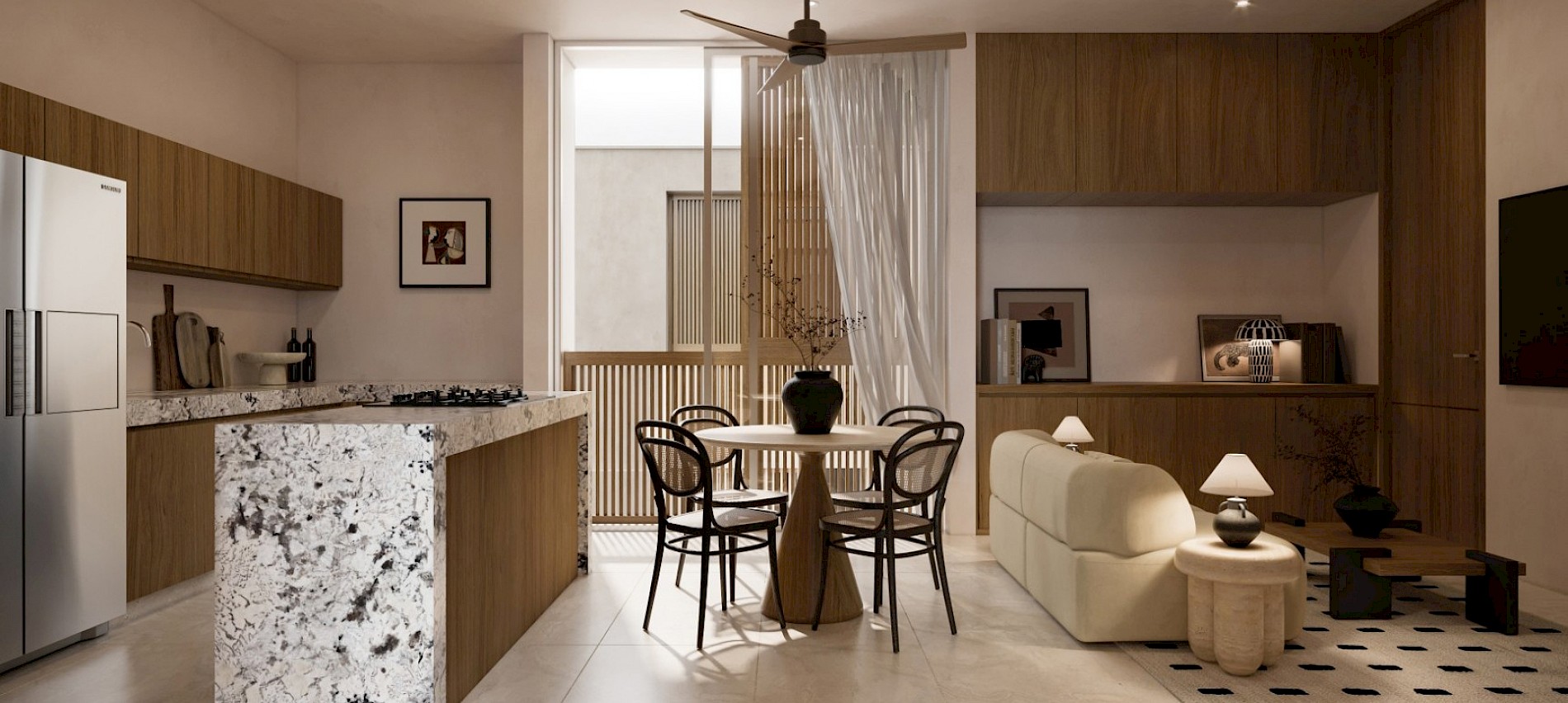 Departamentos Huna, un proyecto conformado por 36 unidades en total, localizado en la zona de Cholul a escasos metros de la Avenida Paseo Norte. Huna es un proyecto que contará con acceso controlado y amenidades.