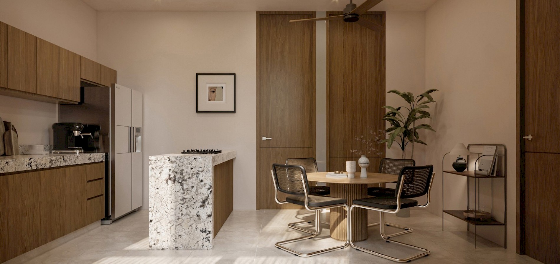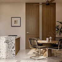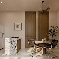 Este modelo se caracteriza por ser un tipo estudio, cuenta con habitación con clóset vestidor y un baño completo para dar servicio al área social y la habitación.