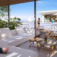 La torre A2 es uno de los 7 edificios que darán vida a Infiniti, que estará conformada únicamente de 613 unidades con variedad de amenidades distribuidas en cinco áreas, como Casa Club, un jardín infinito, rooftop y un exclusivo club de playa en San Benito. Este modelo se caracteriza por contar con tres amplias habitaciones, una sala de TV y una amplia terraza con vistas hermosas del desarrollo.