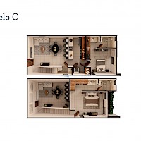 Ukana está conformado por 239 departamentos divididos en cuatro torres con 4 modelos de departamentos de 1 y 2 habitaciones. Este modelo se carecteriza por contar con dos pisos con dos espaciosas habiaciones, una de ellas en planta baja.
