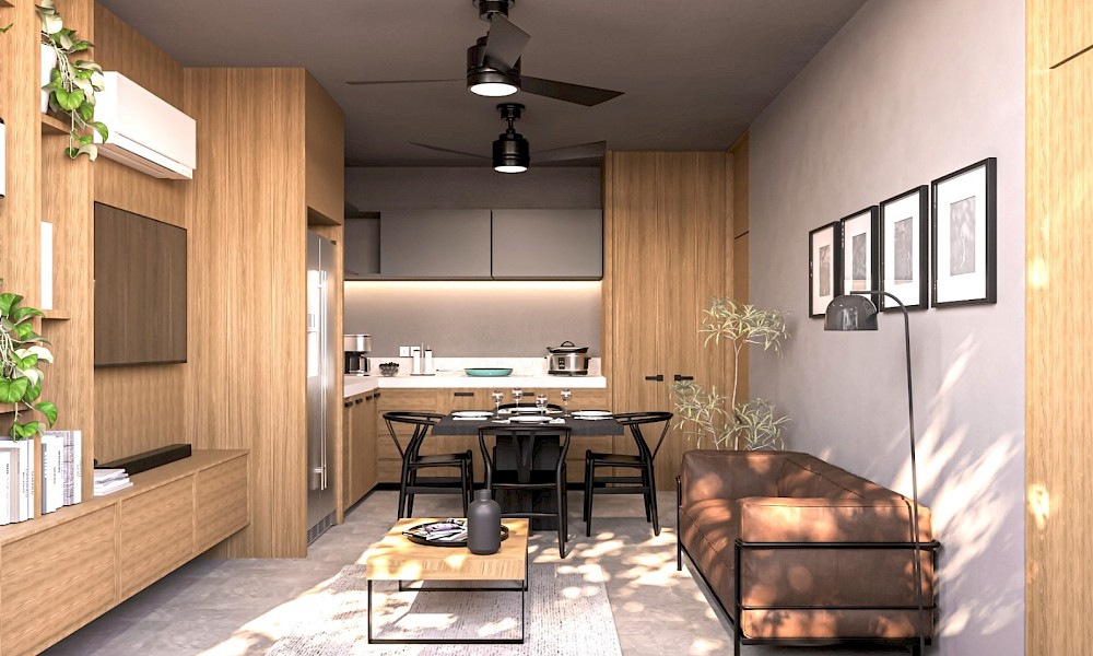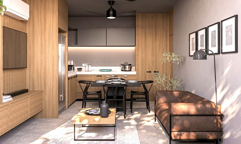 Este departamento se caracteriza por contar con una habitación, y tener diferentes variaciones ya sea: jardín privado al estar situado en planta baja o un baño de visitas adicional.