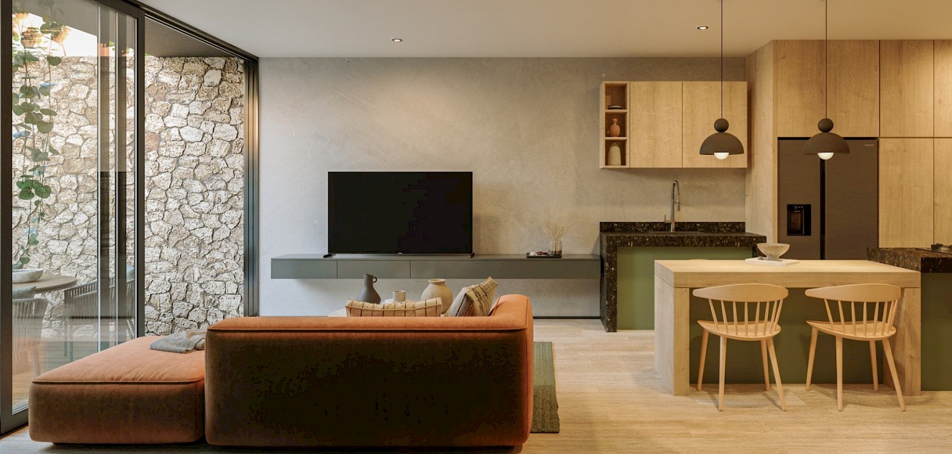 Departamentos en preventa en Jacinto en la zona de Temozón, en el norte de la ciudad de Mérida, a escasos minutos de plazas comerciales como City Center y variedad de áreas de entretenimiento. El desarrollo contará con seguridad por medio de caseta de vigilancia las 24 horas del día y contará con un diseño único que nos remonta a nuestros orígenes.