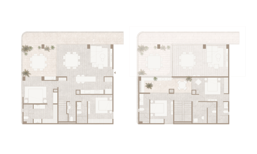 Este prototipo se caracteriza por estar en el último piso con una distribución en dos niveles así como cuatro habitaciones con baño completo y un cuarto de servicio con baño, ideal para aquellos que buscan un departamento cómodo con espacios amplios