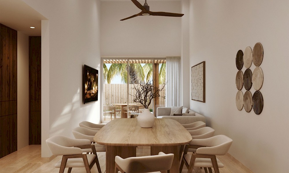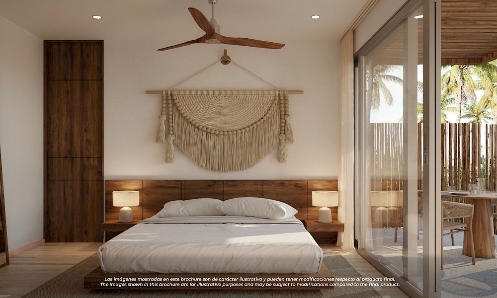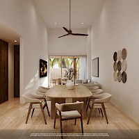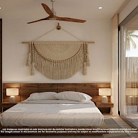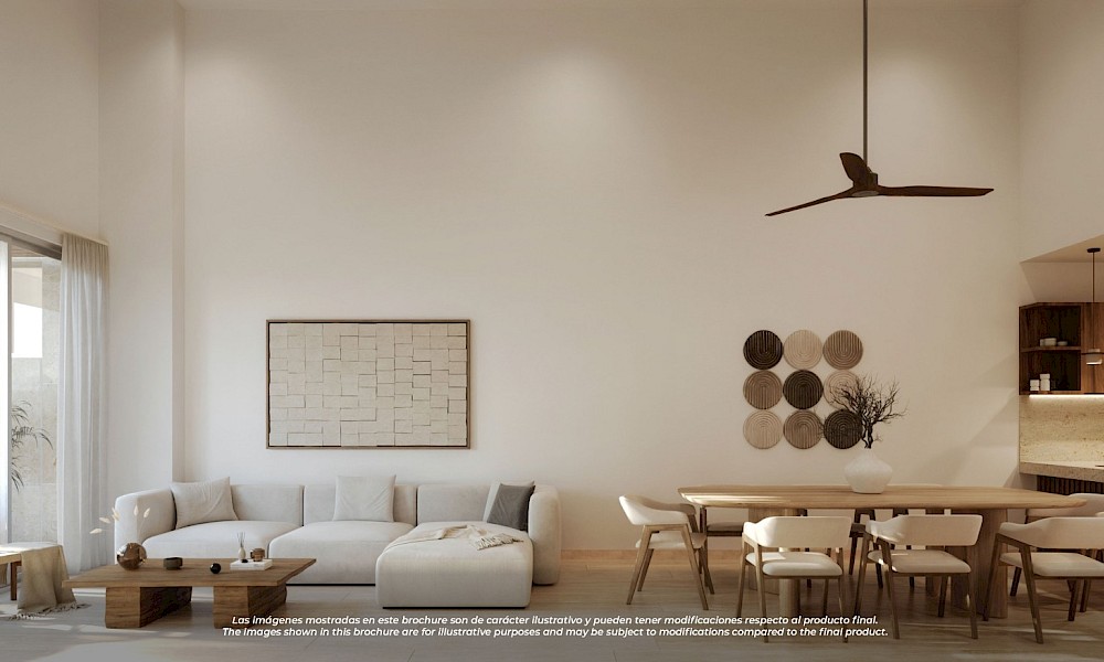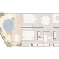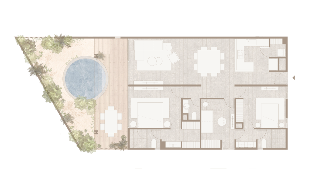 Este prototipo se caracteriza por estar situado en planta baja y tener un área de terreza con piscina privada, además de tener dos habitaciones, dos baños y un área flex, ideal para aquellos que buscan un departamento cómodo un un área adicional para recibir visitas o adaptar como más lo deseen.