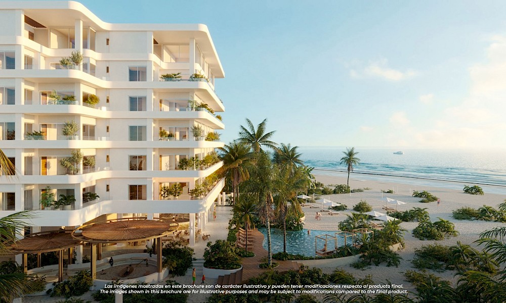 Departamentos en Marbello, ubicados frente a la la playa de San Benito a 45km de la Ciudad de Mérida, con 46 metros de frente de playa, el desarrollo está conformado por 74 departamentos con cinco tipologías diferentes. Un proyecto que ofrece amenidades para toda la familia y seguridad privada 24/7.