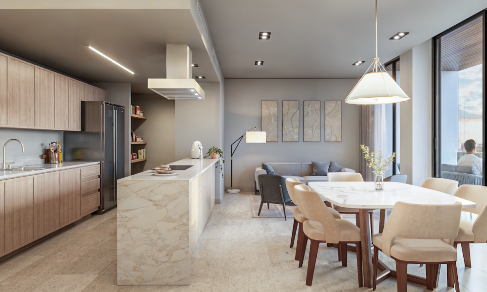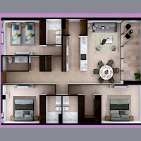El modelo Sky home, se caracteriza por tener una distribución con tres habitaciones y tres baños, además de una terraza en área social.