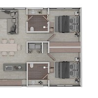 Nabina estará conformada de 33 departamentos divididos en 4 torres, cada una de tres niveles. Este modelo se caracteriza por contar con dos amplias habitaciones y tener la opción de estar en en planta baja, nivel uno o dos.