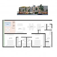 El modelo pentgarden se caracteriza por estar ubicada en planta baja, tener 2 habitaciones con baño propio y un area de terraza con piscina en el departamento.