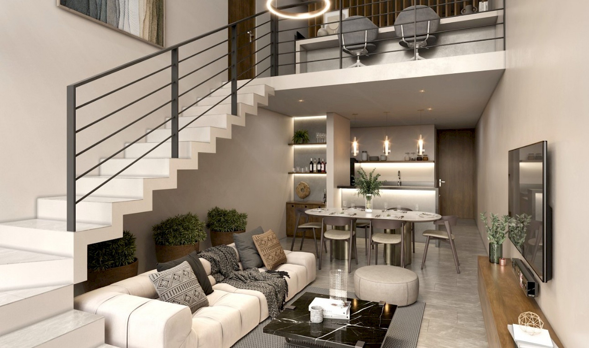 El modelo Penthouse se caracteriza por estar distruibudo en dos niveles y contar con 3 habitaciones, cada una con baño propio. Además de un área social a doble altura que nos brindará mayor sensación de amplitud.