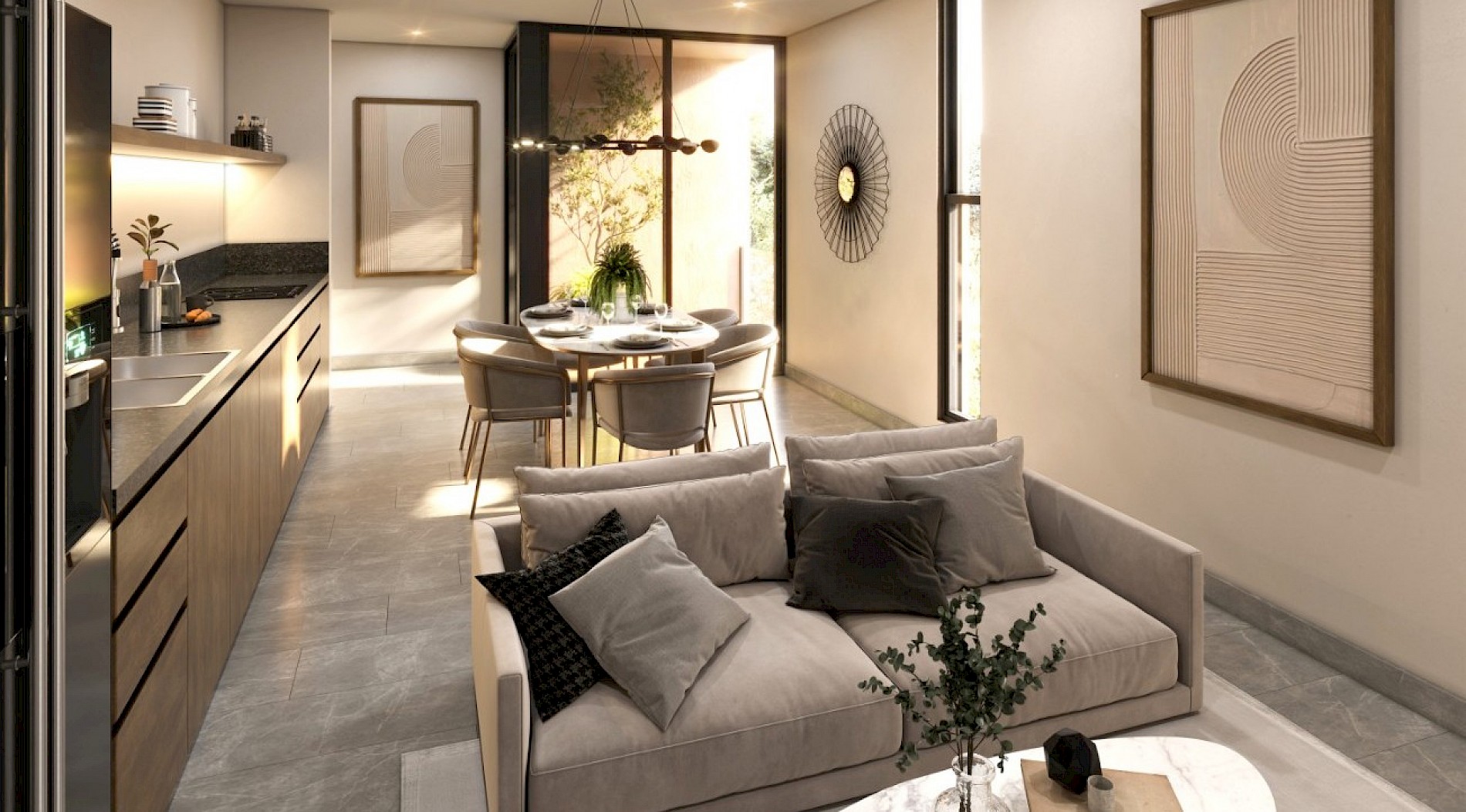 Departamentos en Ninfa, un desarrollo conformado por 20 unidades distribuidos en tres niveles dentro de un desarrollo que brinda seguridad privada y amenidades, ubicado en Temozón Norte, una zona que se encuentra en constante crecimiento y está ubicado a escasos minutos