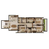 Este modelo se caracteriza por contar con tres habitaciones con baño completo y estar ubicado en la planta baja de la torre.