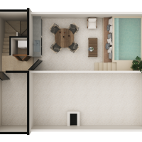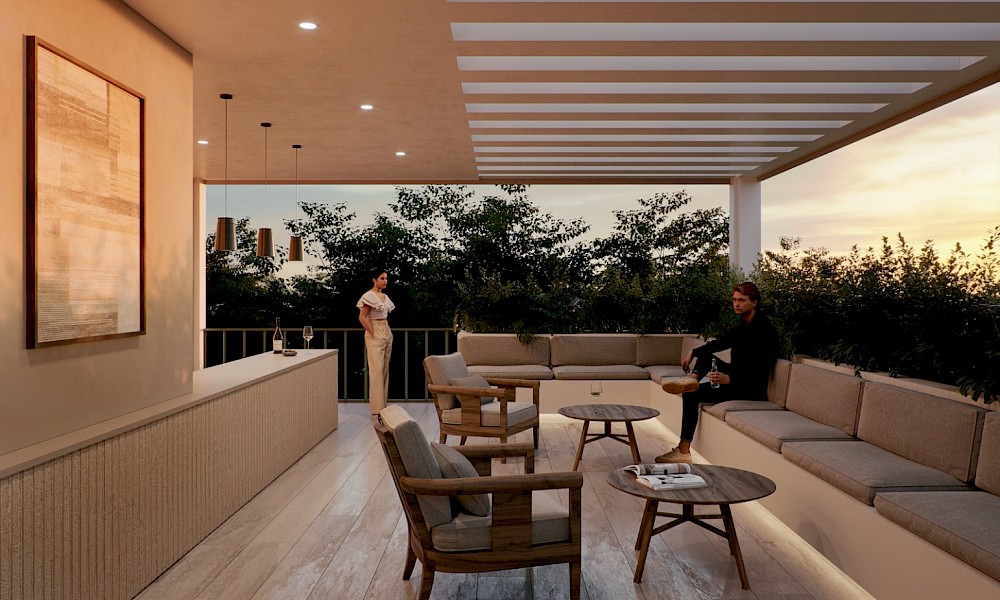 El modelo Copa se caracteriza por contar con dos habitaciones cada una con baño propio, además de un rooftop privado con terraza y piscina.
