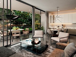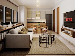 El desarrollo estará conformado de 16 departamentos divididos en cuatro niveles. El modelo Lotus se caracteriza por contar con dos habitaciones y un área de sala-comedor con vista a una amplia terraza.