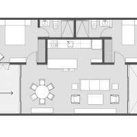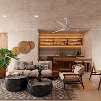 Este modelo se caracteriza por tener dos habitaciones con baño y clóset, además de una estancia cómoda con una terraza amplia.