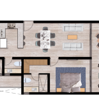 El modelo C2 se caracteriza por tener una terraza muy amplia para el cuarto principal y espacio de sala-comedor.