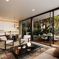 Este modelo se caracteriza por tener dos habitaciones separadas y un área social con vistas panorámicas hacia el entorno, gracias a su distribución. Cuentan con opción en planta baja y en el último nivel.