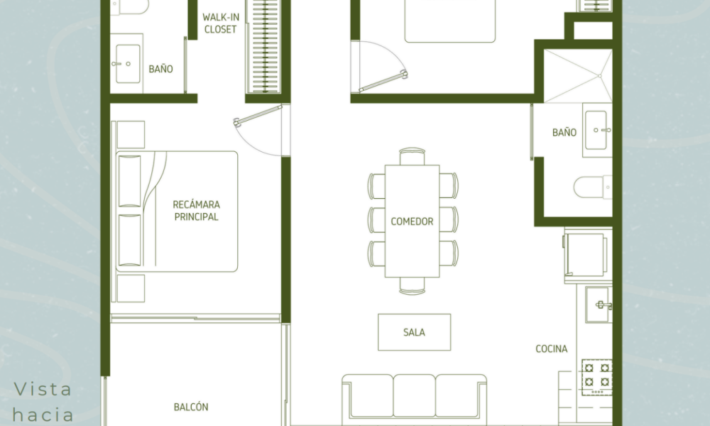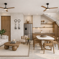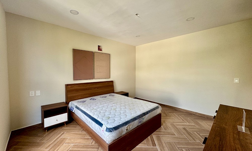 Este modelo se caracteriza por tener dos habitaciones y dos baños en planta baja con un área de jardín privado.