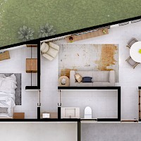 Este modelo se caracteriza por tener 1 habitación y 1 baño