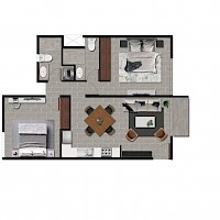 El desarrollo estará conformado únicamente de 42 departamentos de 1 y 2 habitaciones distribuidos en tres niveles. El modelo Magna cuenta con una distribución estratégica con dos habitaciones, una de ellas con baño completo.
