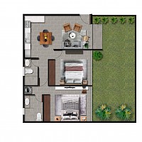 El desarrollo estará conformado únicamente de 42 departamentos de 1 y 2 habitaciones distribuidos en tres niveles. El modelo San Vitto cuenta con una distribución estratégica con una habitación con baño completo y un estudio o habitación de visitas, con opción de ubicarse en planta baja con área de jardín.