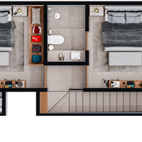 El modelo Duplex se caracteriza por tener una distribución en dos niveles, con las habitaciones en planta alta.