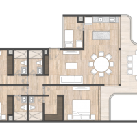 Esta opción se caracteriza por tener 3 habitaciones cada una con baño y 2 cajones de estacionamiento.