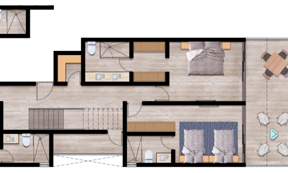 El penthouse se caracteriza por tener 4 habitaciones todos con terrazas muy amplias y una más en espacio exterior de sala-comedor.