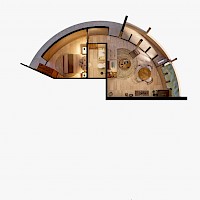 El modelo B se caracteriza por encontrarse exclusivamente en el primer nivel de cada clúster con una amplia habitación, además de una piscina privada y terraza.