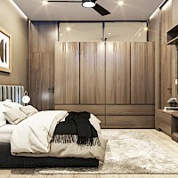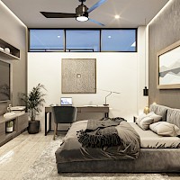 El modelo D cuenta con dos habitaciones, la principal con espacio para clóset vestidor y baño propio.