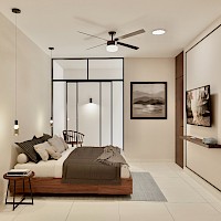 El modelo B se caracteriza por contar con una habitación con baño propio y un baño de visitas, además de estar ubicado en planta baja.