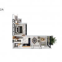 El modelo 2A se caracteriza por contar con una amplia habitación con baño propio, una terraza y se encuentra en el primer nivel de la torre.
