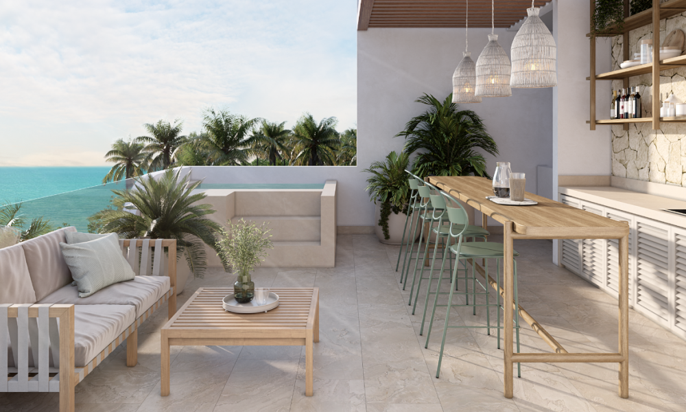 El penthouse se caracteriza por contar con tres habitaciones y un rooftop con terraza y jacuzzi privado con vistas al mar.