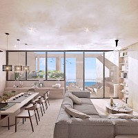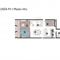 El modelo penthouse 1 se caracteriza por contar con tres amplias habitaciones en planta baja y una terraza privada con piscina a doble altura en el segundo nivel con las vistas más privilegiadas de la torre.