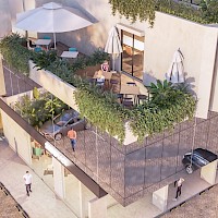 Mira contará con 13 exclusivos departamentos ubicados en el cuarto y quinto nivel. El penthouse A cuenta con dos amplias habitaciones cada una con baño propio una terraza con jacuzzi.