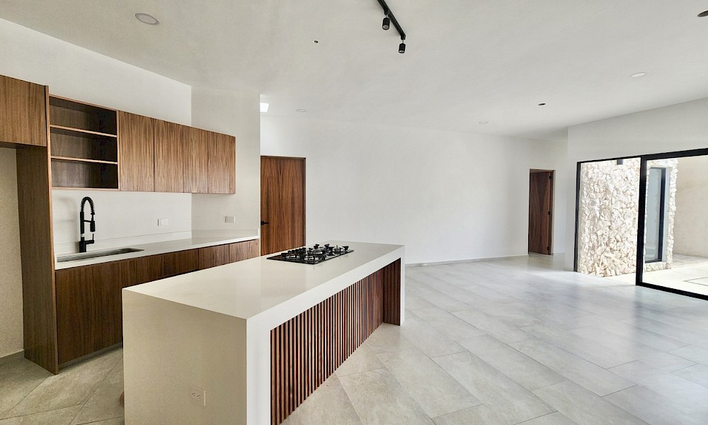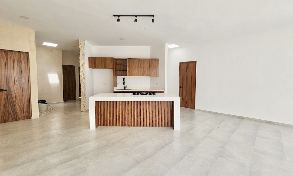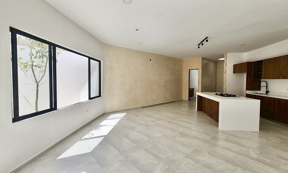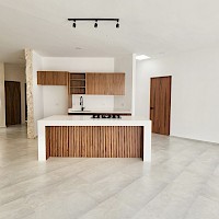 Esta propiedad se caracteriza por estar distribuida en una sola planta, con un diseño único y moderno. Con espacios amplios en la zona de la sala, comedor y cocina, todas con vistas hacia el área social y jardín.