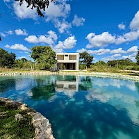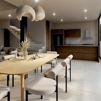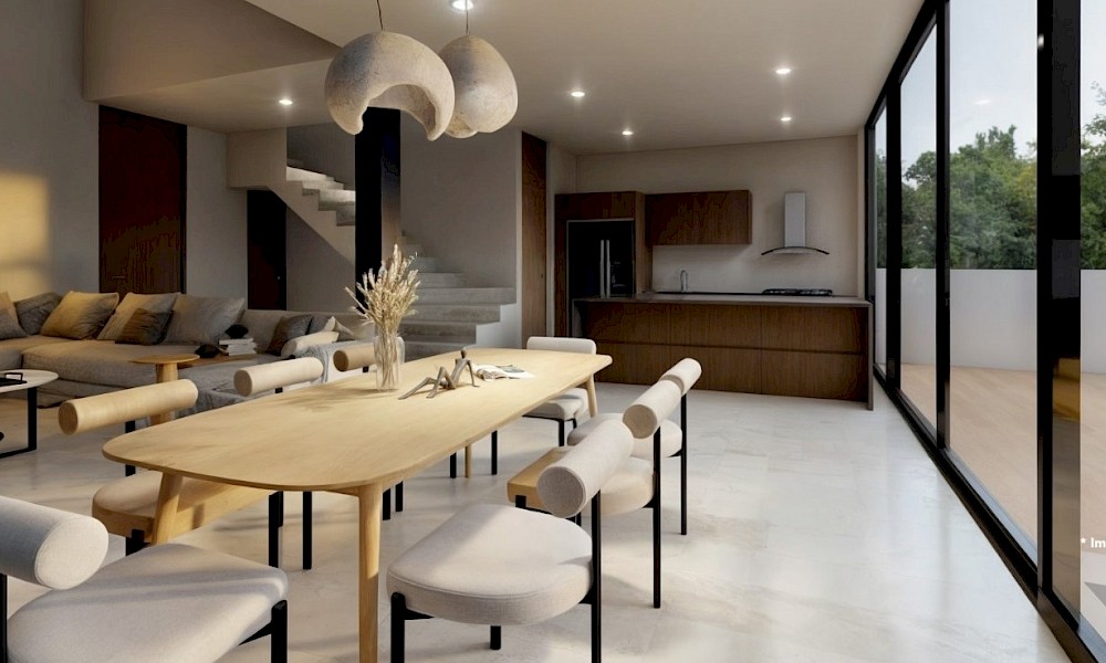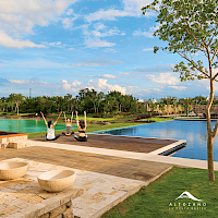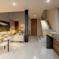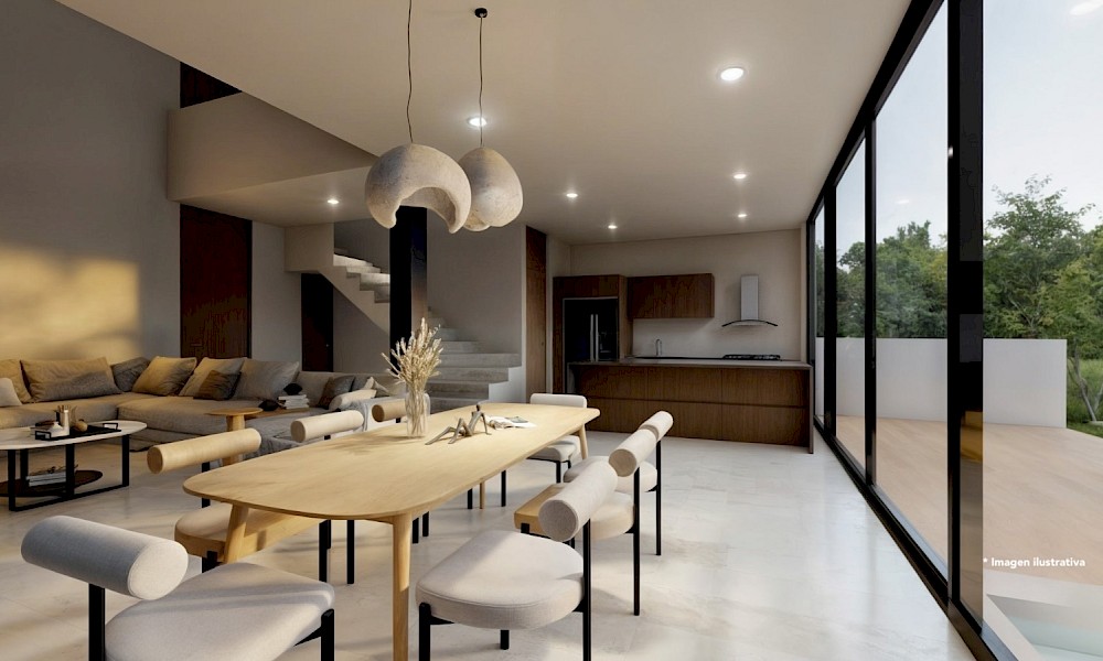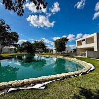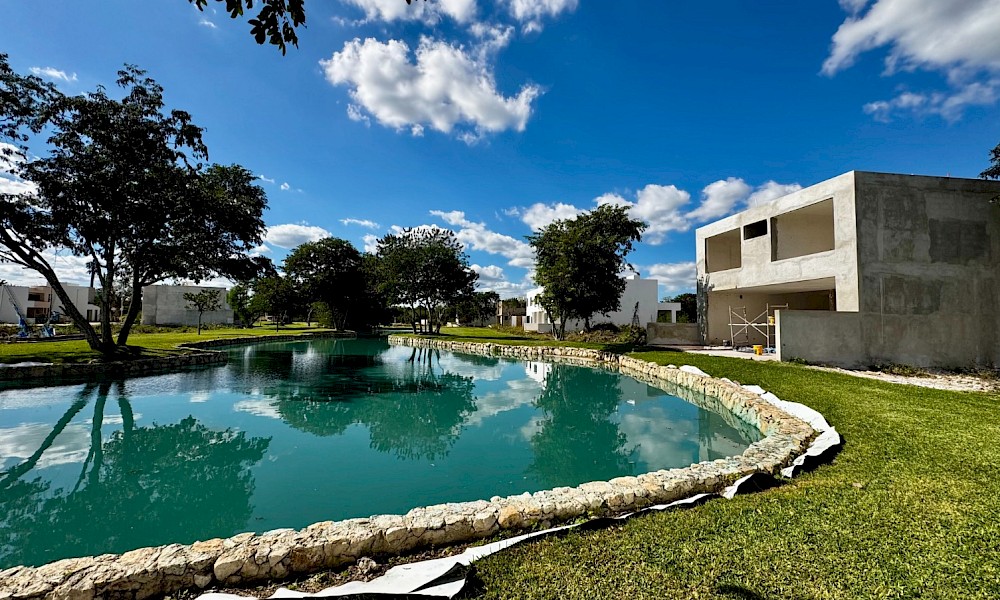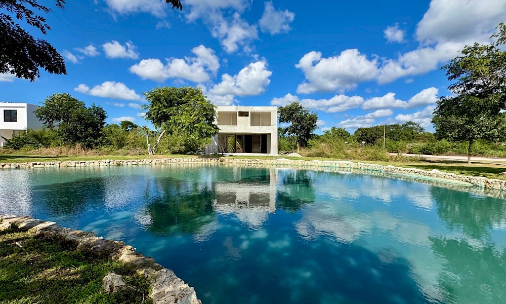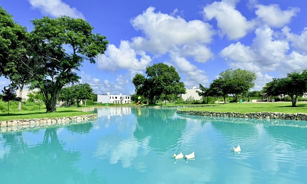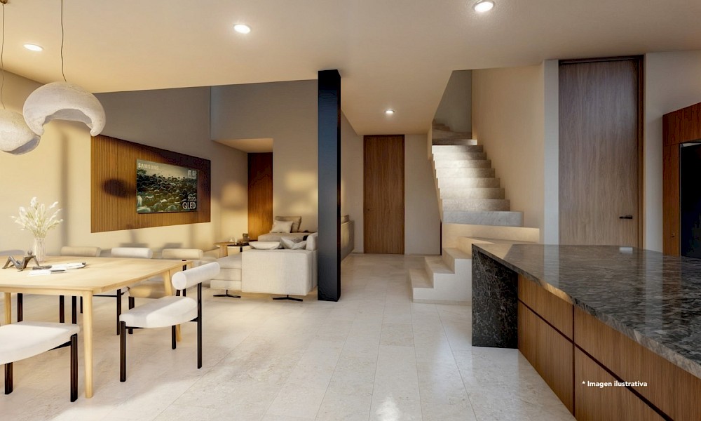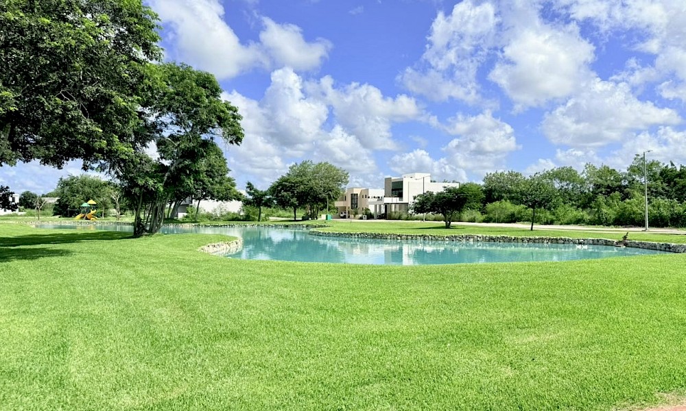Esta propiedad se caracteriza por tener 4 habitaciones, una de ellas en planta baja, además de una doble altura en el área social y tener una vista espectacular hacia uno de los lagos del desarrollo.