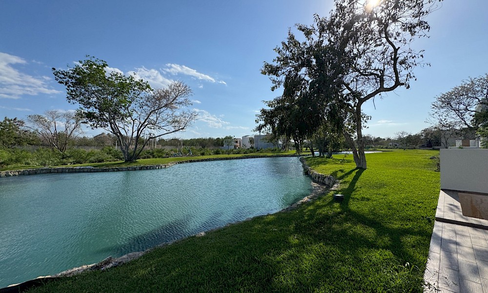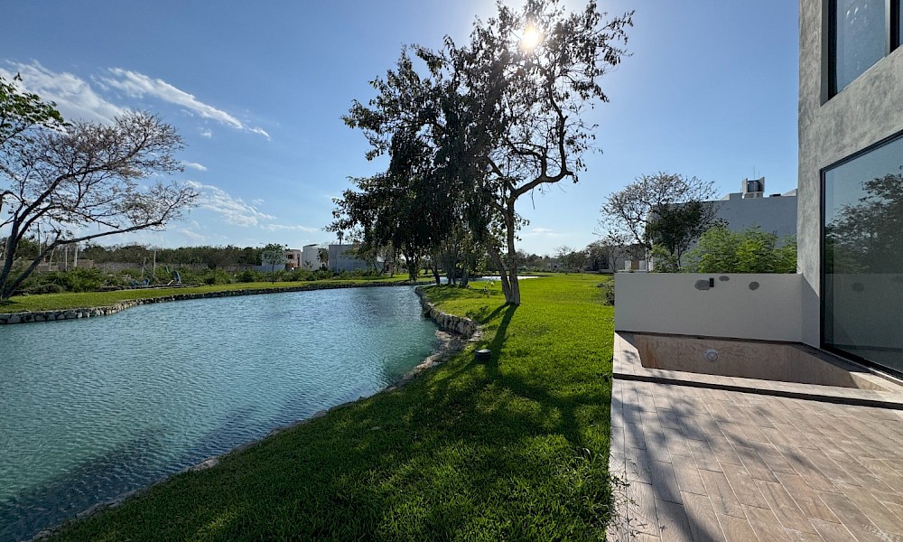 Esta propiedad se caracteriza por tener 4 habitaciones, una de ellas en planta baja, además de una doble altura en el área social y tener una vista espectacular hacia uno de los lagos del desarrollo.