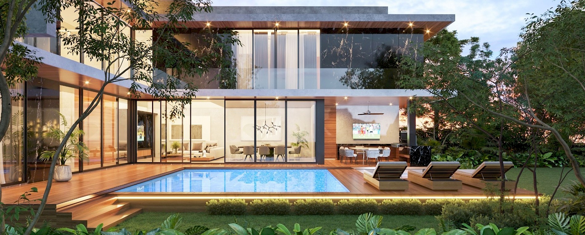 El modelo 141 se caracteriza por tener una distribución armoniosa en dos niveles con un extenso jardín con piscina y jacuzzi, así como con 4 amplias habitaciones.
