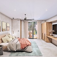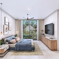 Esta propiedad se caracteriza por tener una excelente distribución en una planta con tres amplias habitaciones, cada una con baño propio y un área de sala-comedor a altura y media.