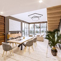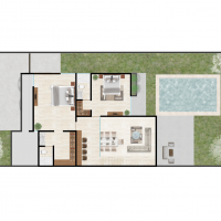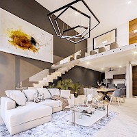 Esta propiedad se caracteriza por contar tener una habitación en planta baja y la sala-comedor a doble altura brindando así, una sensación de mayor amplitud.