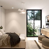 Esta casa se caracteriza por tener una habitación en planta baja, y la habitación principal con espacios muy cómodos.