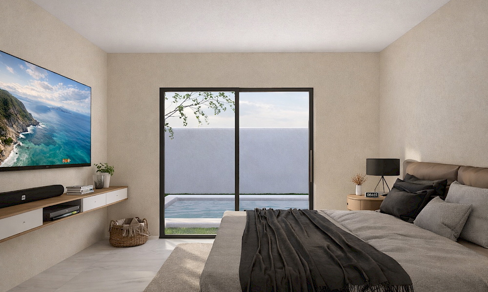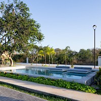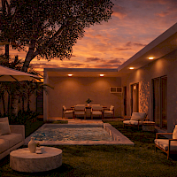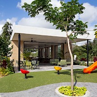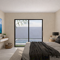 Este modelo se caracteriza por tener una armoniosa distribución en un nivel con tres habitaciones, gran iluminación y ventilación cruzada. Todas las áreas sociales cuentan con una hermosa vista a la piscina.
