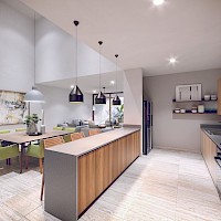 - Cocina con barra desayunadora